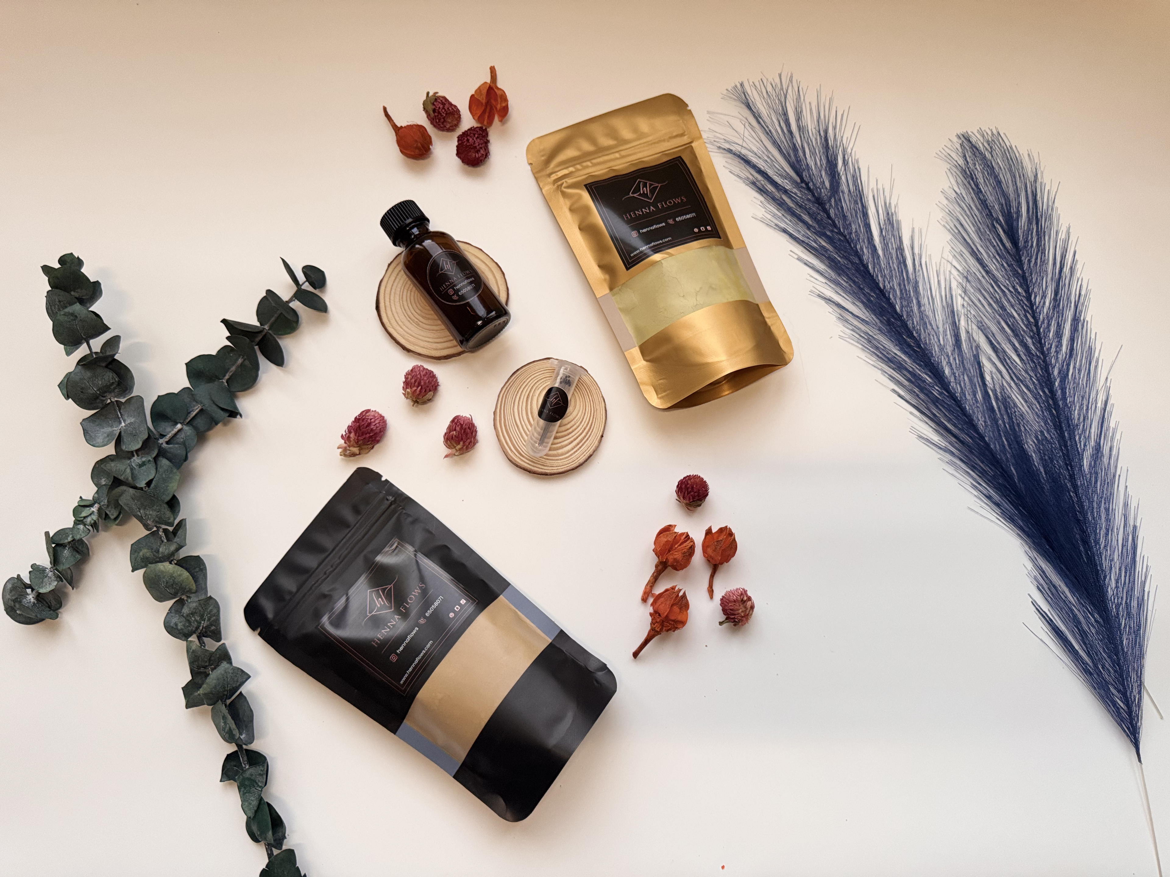 We provide Organic sourced ingredients and Supplies for Fresh Henna body art, Natural Hair Dye, and Jagua Art.